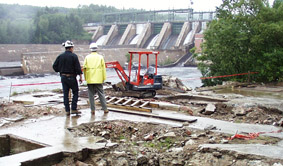 À La Tuque, nos archéologues réalisent, pour Hydro-Québec, une expertise sur le site de l'ancienne centrale de production d'électricité Brown. La mise au jour des vestiges de même que leur consolidation ont été effectuées sous contrôle archéologique afin de prélever tout indice témoignant du passé de cette très belle centrale, située en surplomb du Saint-Maurice. Nos archéologues ont participé à la mise en place du parc actuel, situé au pied du barrage moderne. Ils ont également collaboré à la conception des panneaux d'interprétation fixés sur un caillebotis d'où on peut voir la surface agitée des eaux de la rivière.